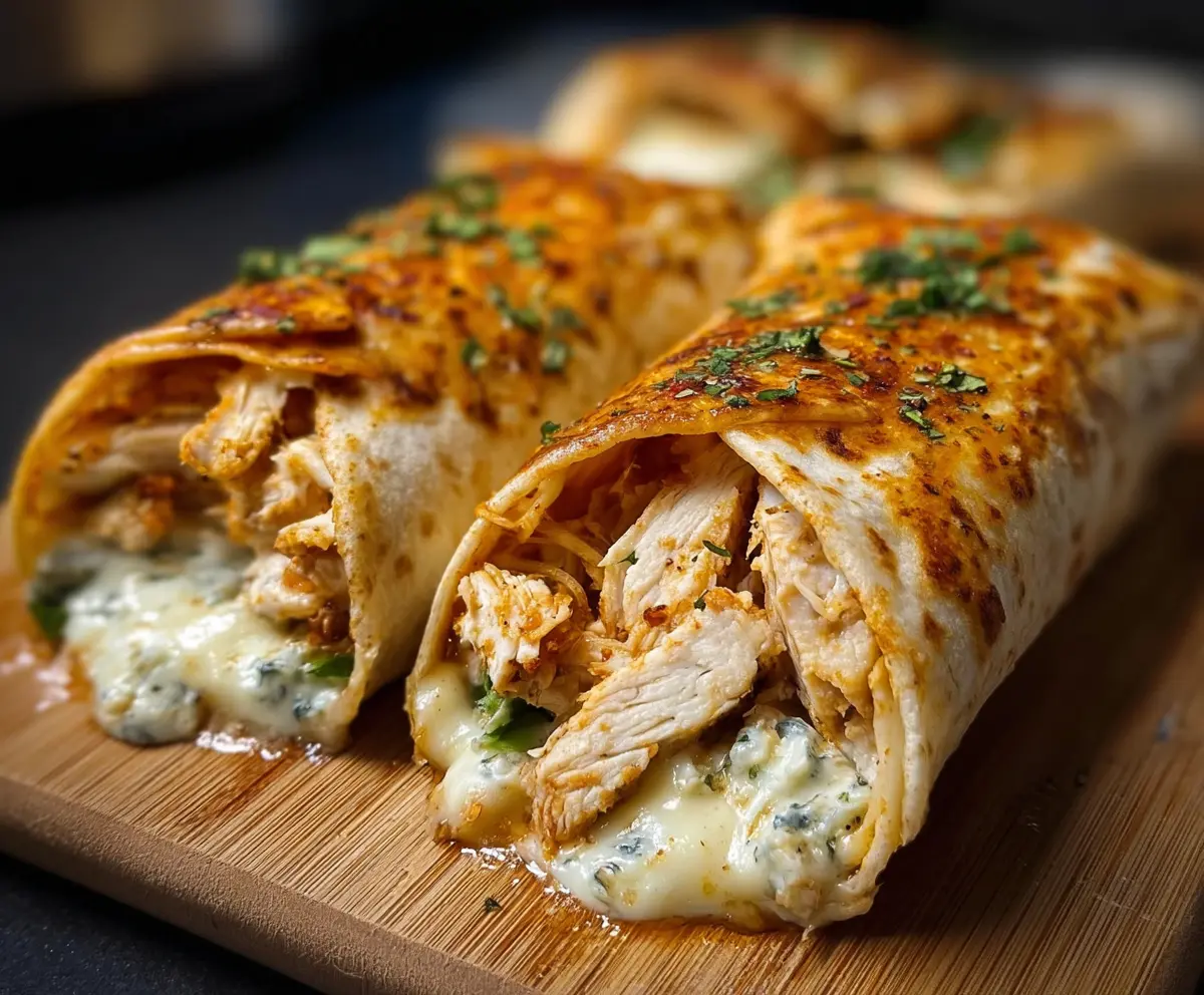 Enjoy these crispy, cheesy chicken wraps fresh and warm for a delicious meal or snack anytime!