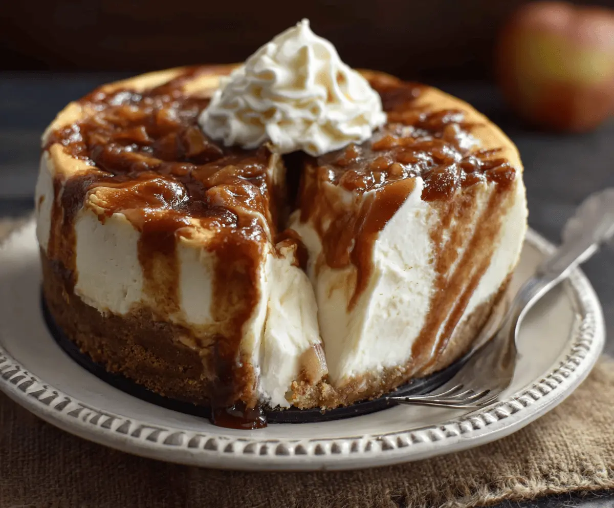 After cooling, remove the cheesecake from the oven and let it chill in the refrigerator for at least 4 hours or if you can, overnight. When you’re ready to serve, you can top it with a dollop of whipped cream if you like. Slice it up, serve, and enjoy your deliciously creamy Apple Butter Cheesecake!
