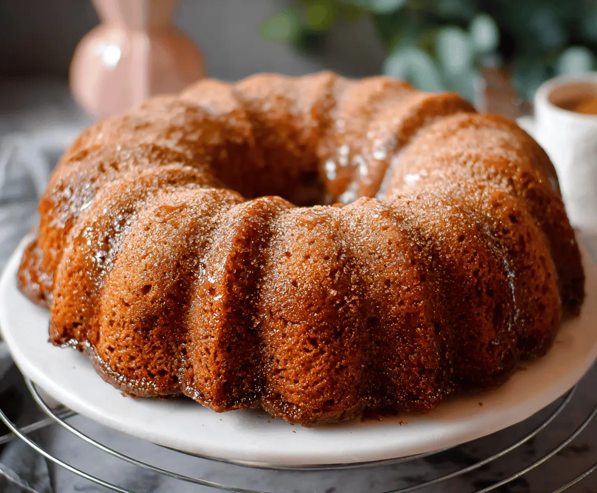 This cake is perfect for autumn gatherings, delivering a moist, spiced flavor with a hint of apple cider and a delightful cinnamon-sugar crust on top!