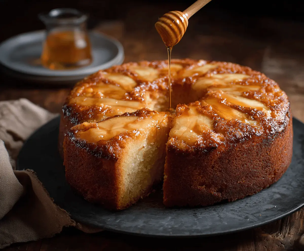 Run a knife around the edge of the pan to loosen the cake. Carefully invert it onto a serving plate, allowing the apple layer to be on top. If you’d like, drizzle some additional honey over the top for that extra sweetness before serving. Enjoy your moist, aromatic Apple Honey Cake warm or at room temperature!
