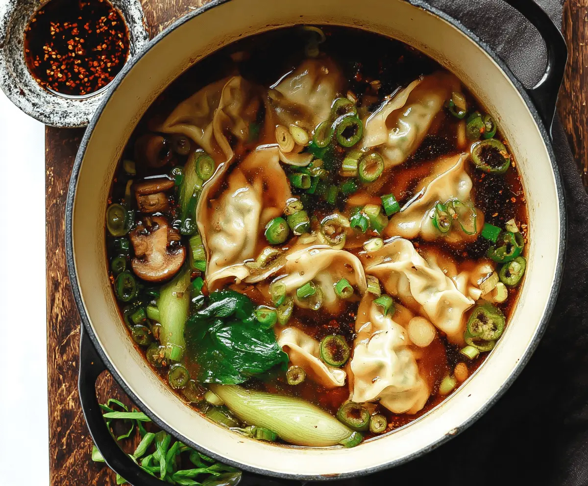 This Asian Dumpling Potsticker Soup is all about warmth and comfort. Loaded with delicious dumplings and veggies in a tasty broth, it’s perfect for a cozy night in!