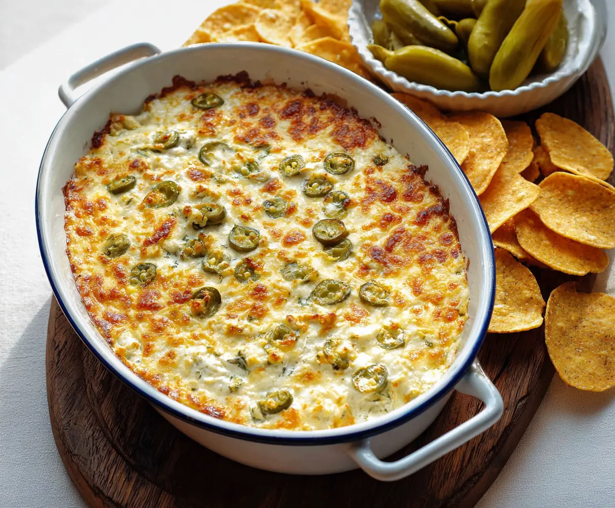 Finally, serve your warm Baked Pickle Dip with a side of crackers or chips. Dive in, and enjoy this delicious, tangy, and cheesy delight with your friends and family!