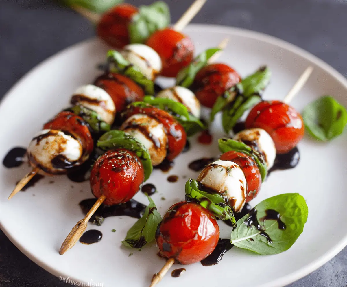 Yes, you can prepare the skewers a few hours in advance! Just assemble them, cover with plastic wrap, and refrigerate. Drizzle the balsamic glaze on just before serving to keep everything fresh and flavorful.
