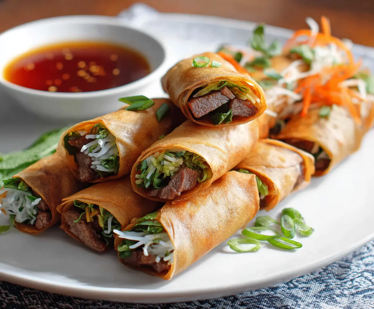 Beef spring rolls are crunchy and tasty snacks filled with seasoned beef and fresh veggies. They’re perfect for dipping in soy sauce or your favorite sauce!