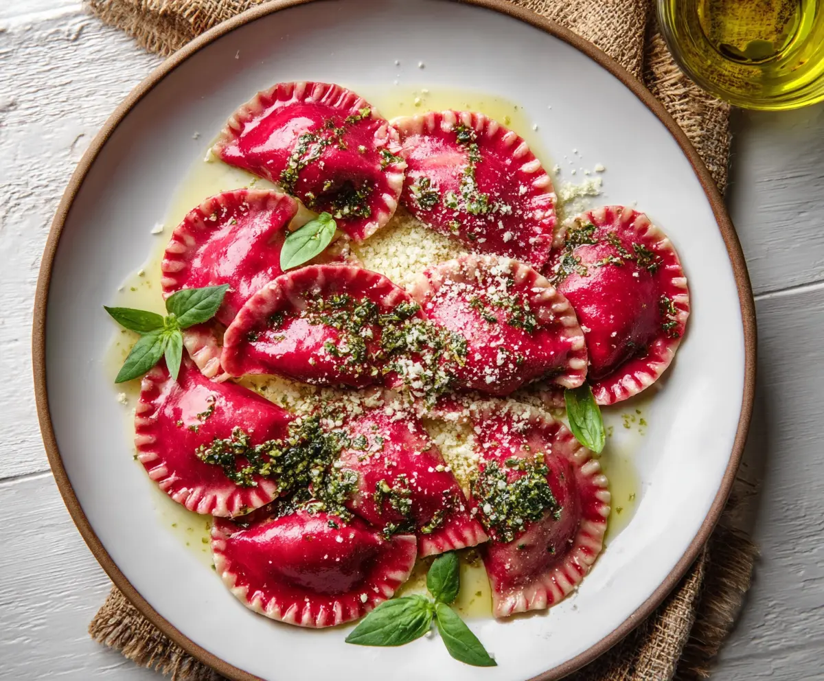 Beet ravioli is a colorful dish made with soft, tasty beet pasta filled with cheese or veggies. It’s bright, beautiful, and perfect for impressing your guests!