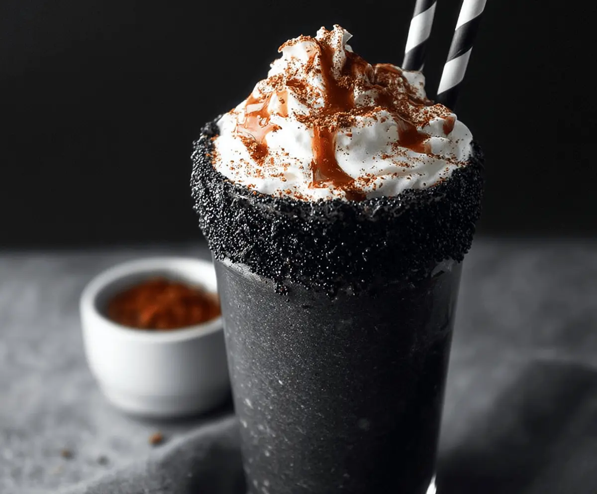 This black milkshake is a fun twist on the classic treat! Made with creamy vanilla ice cream, chocolate syrup, and a hint of food coloring, it’s a spooky and sweet delight.