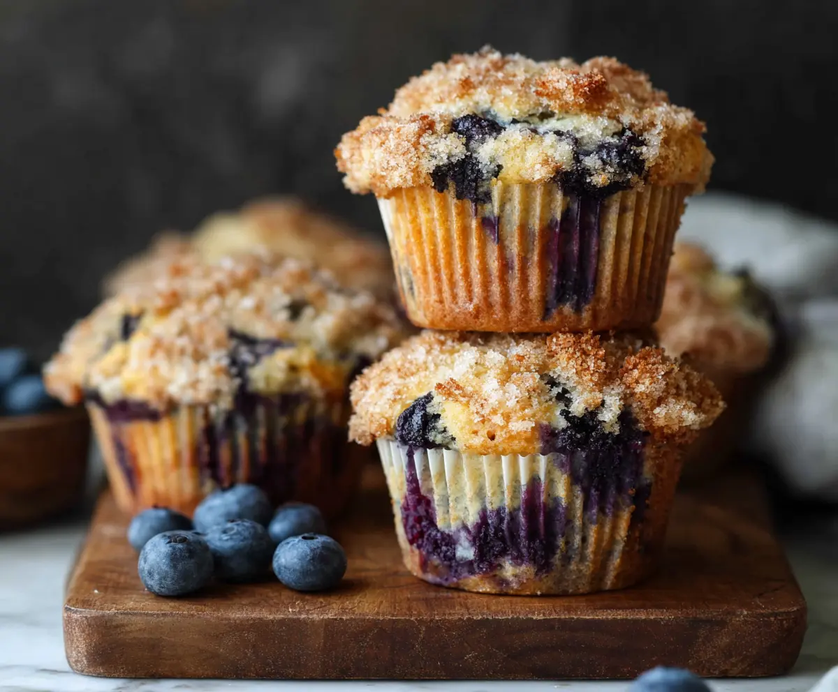 These blueberry muffins are bursting with juicy blueberries and topped with a delightful cinnamon sugar crust. They’re perfect for sharing with family, or you can keep them all to yourself. Enjoy your delicious creation!