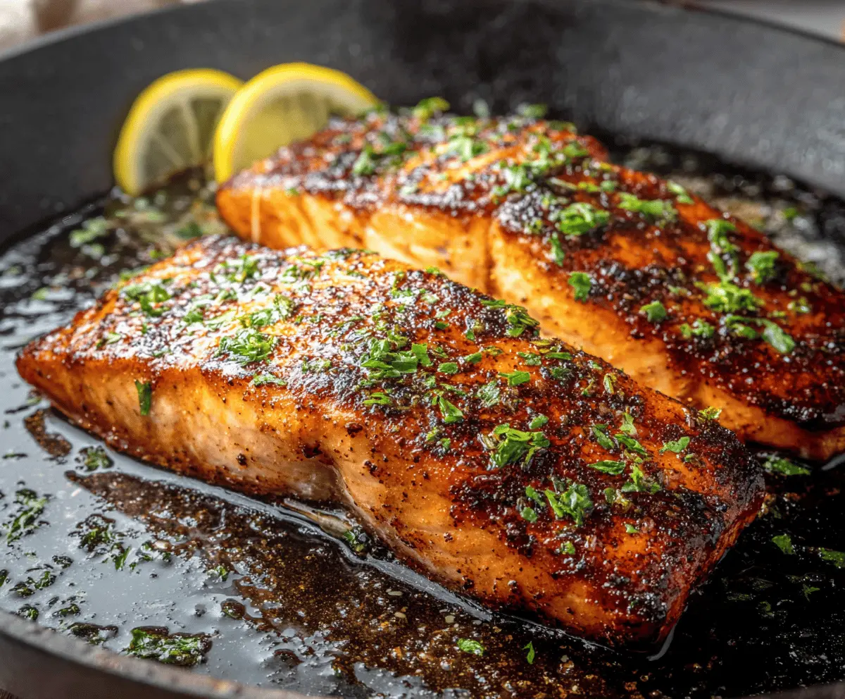 Garnish your dish with freshly chopped parsley and serve with lemon wedges on the side. Enjoy your Cajun Honey Butter Salmon with optional sides like fluffy cooked white rice and steamed asparagus or your favorite veggies!