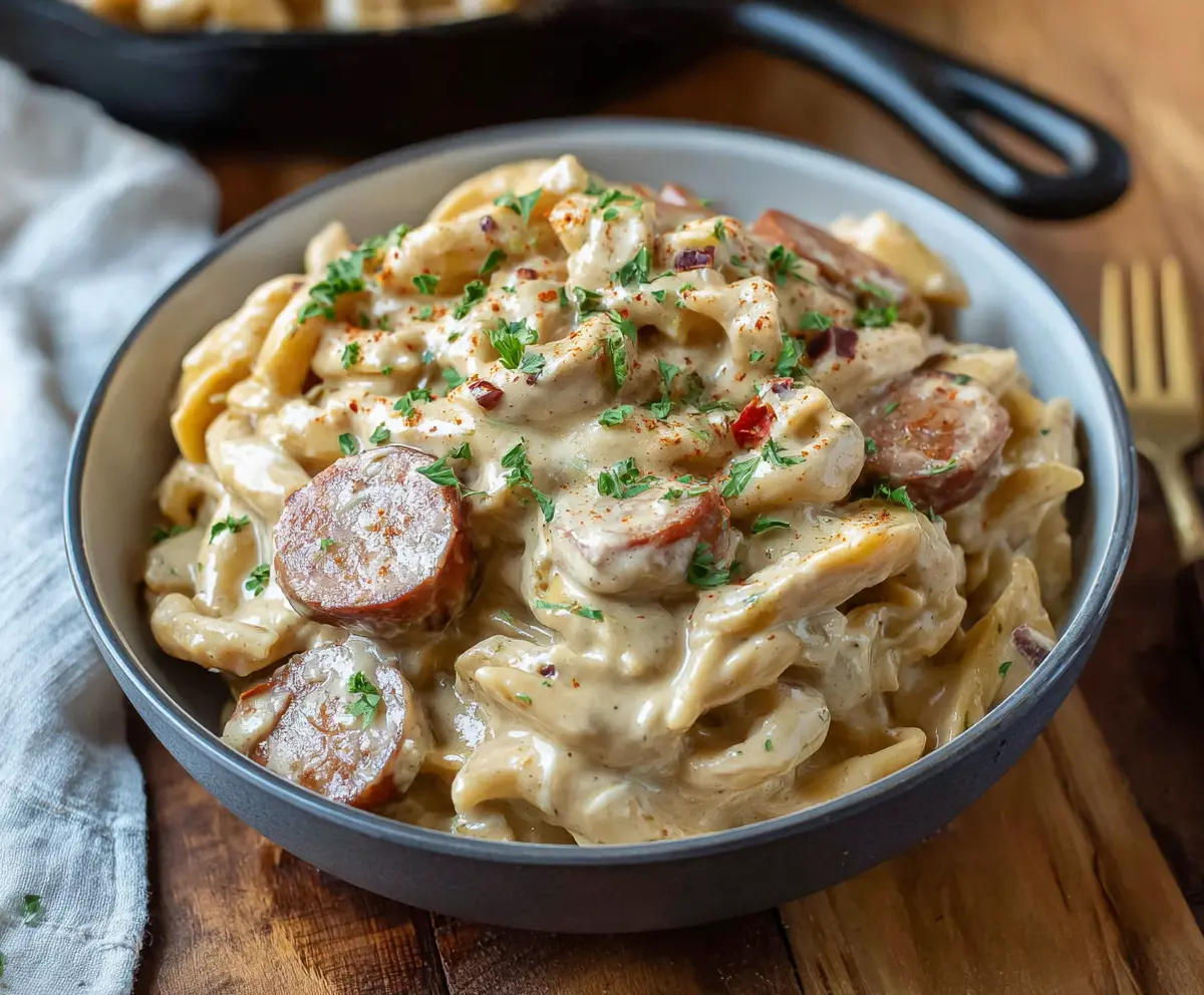 To make this dish vegetarian, simply replace the smoked sausage with a plant-based sausage or sautéed vegetables like zucchini or spinach. You can also use tofu for extra protein or additional mushrooms for that savory depth!