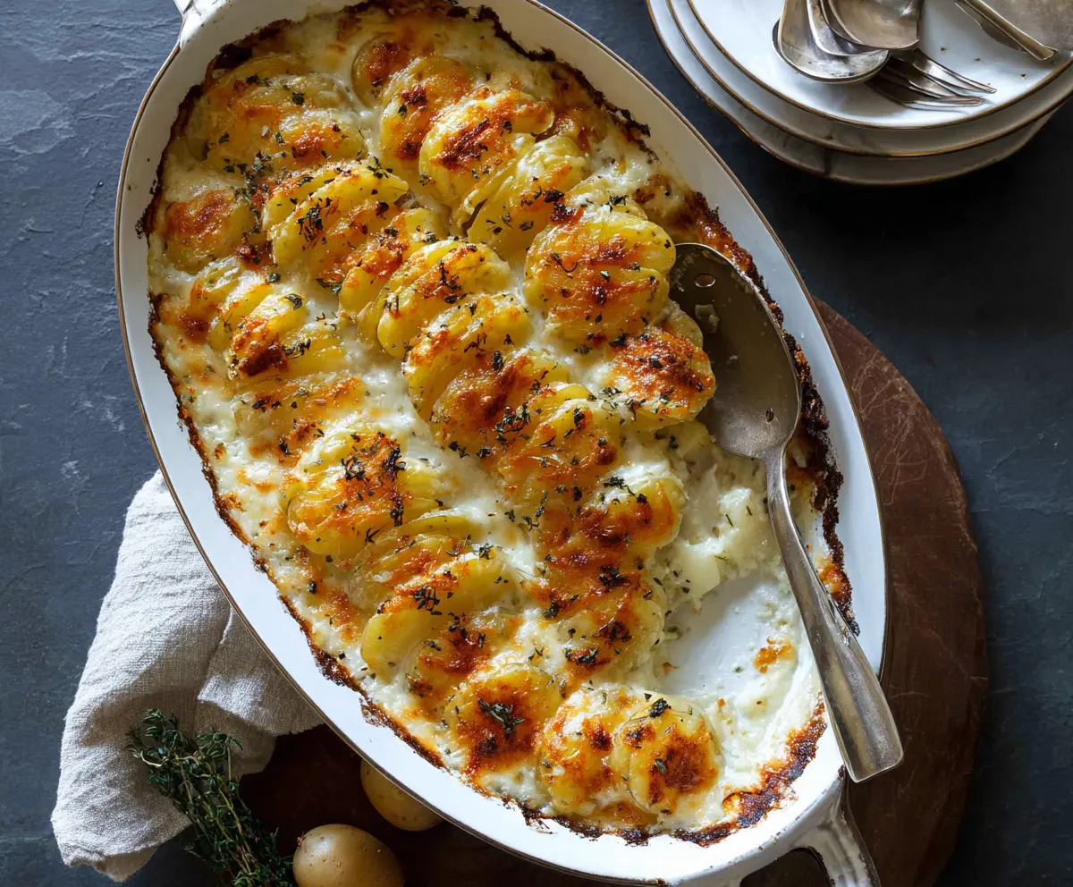 Now dig into your cheesy, garlicky, buttery potato bake, and enjoy every delicious bite!