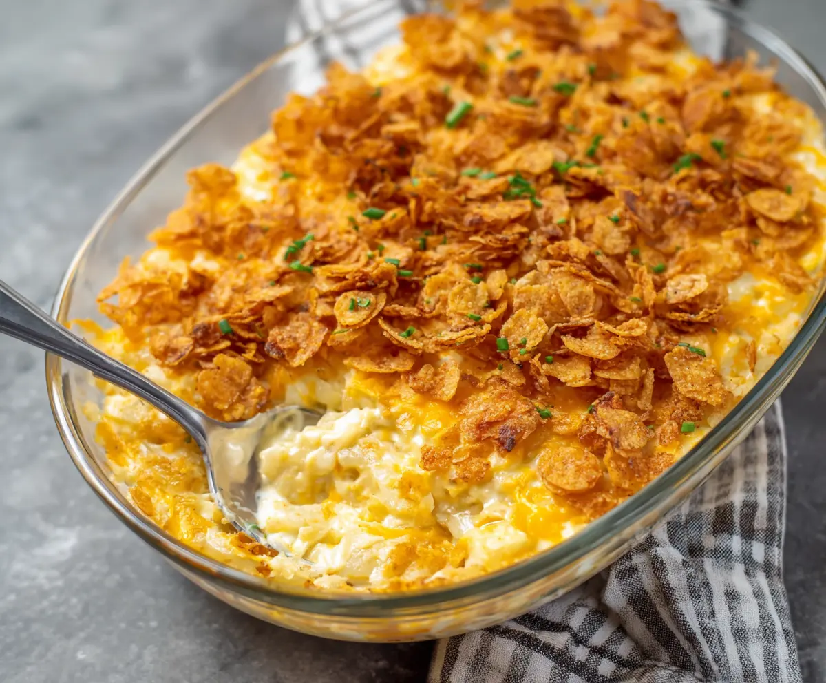 Cheesy Potatoes With Corn Flakes is a warm and tasty dish that brings together creamy potatoes and a crunchy corn flake topping. It’s comfort food at its best!