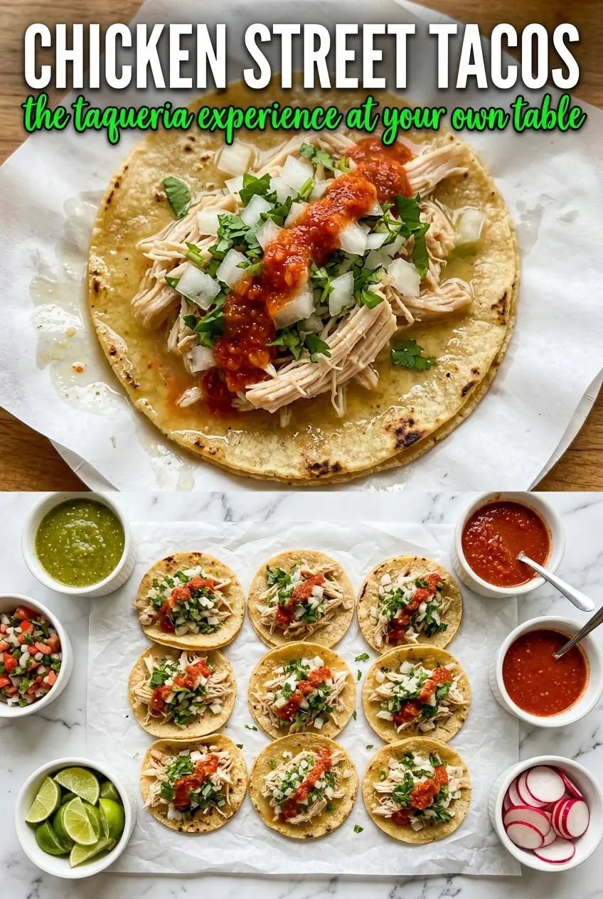 Charred corn tortillas, juicy chicken, and a handful of onion and cilantro make these chicken street tacos feel like the kind of dinner people hover around the stove for. The chicken picks up enough lime and spice to taste bright and savory at the same time, and the quick high-heat cook gives the edges a little color without drying out the center. A stack of these on the table disappears fast.