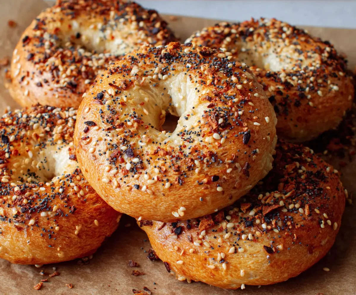 Generously sprinkle everything bagel seasoning on top of the bagels. Feel free to get creative with your toppings if you want to try something different!
