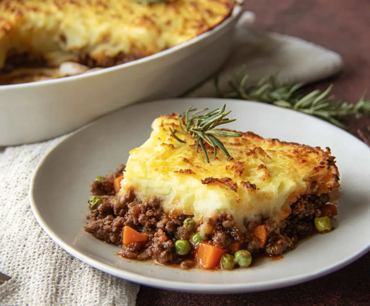 Once done, carefully remove the Cottage Pie from the oven and let it stand for about 5 minutes before serving. Enjoy it hot, and if you like, serve with extra peas or greens on the side for a complete meal!