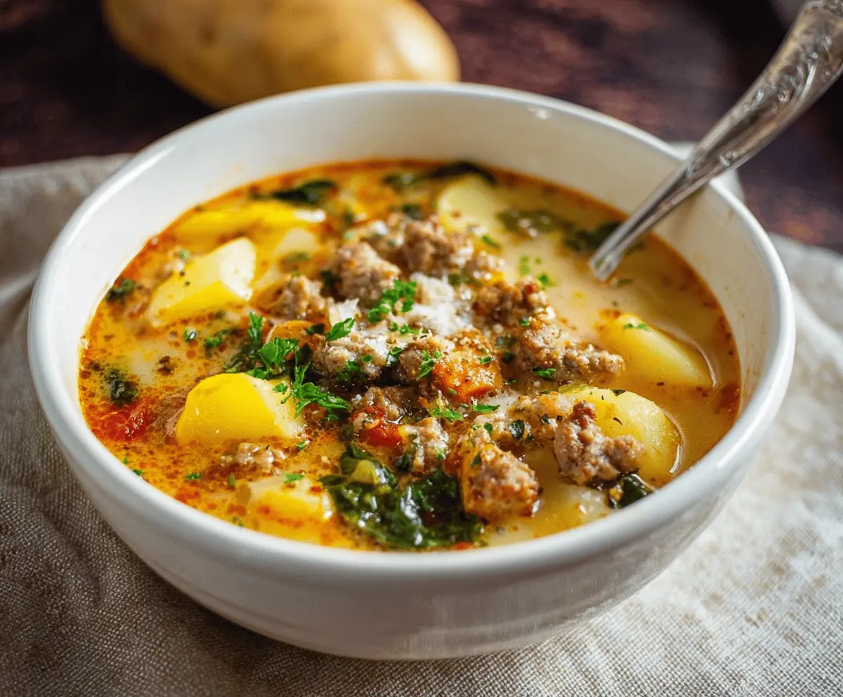 This hearty soup brings together tasty Italian sausage and tender potatoes for a warm bowl of comfort. It’s like a hug in a bowl on chilly days!