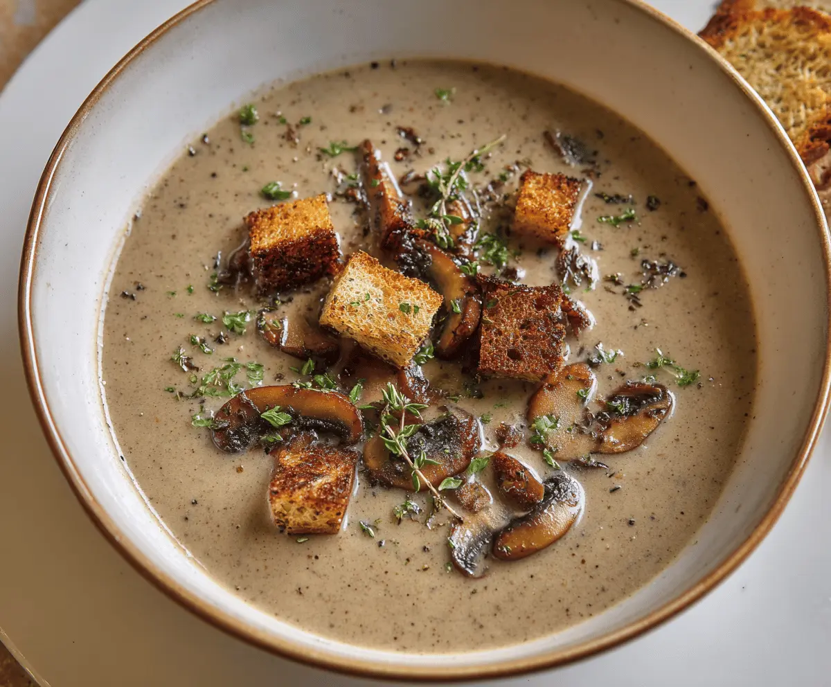 Serve the soup hot with toasted bread or your favorite side. Enjoy this rich and comforting mushroom soup with a creamy texture and a lovely earthy aroma!