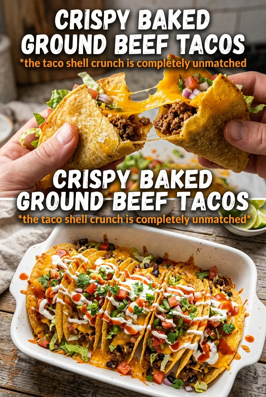 Golden, shatter-crisp taco shells with seasoned ground beef tucked inside make these baked tacos the kind of dinner that disappears fast. The oven does the part that usually turns messy at the stove: it dries the tortillas just enough to give them bite, then leaves them sturdy enough to hold the filling without going limp before the plate hits the table.