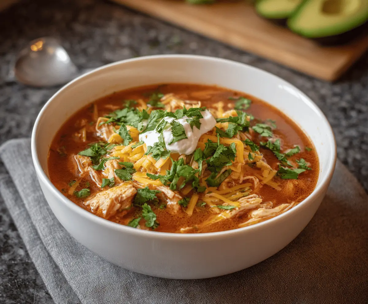 This Crockpot Keto Chicken Taco Soup is a warm and tasty dish packed with juicy chicken, spicy taco flavors, and colorful veggies. It’s super easy to make—just toss everything in your slow cooker and relax!