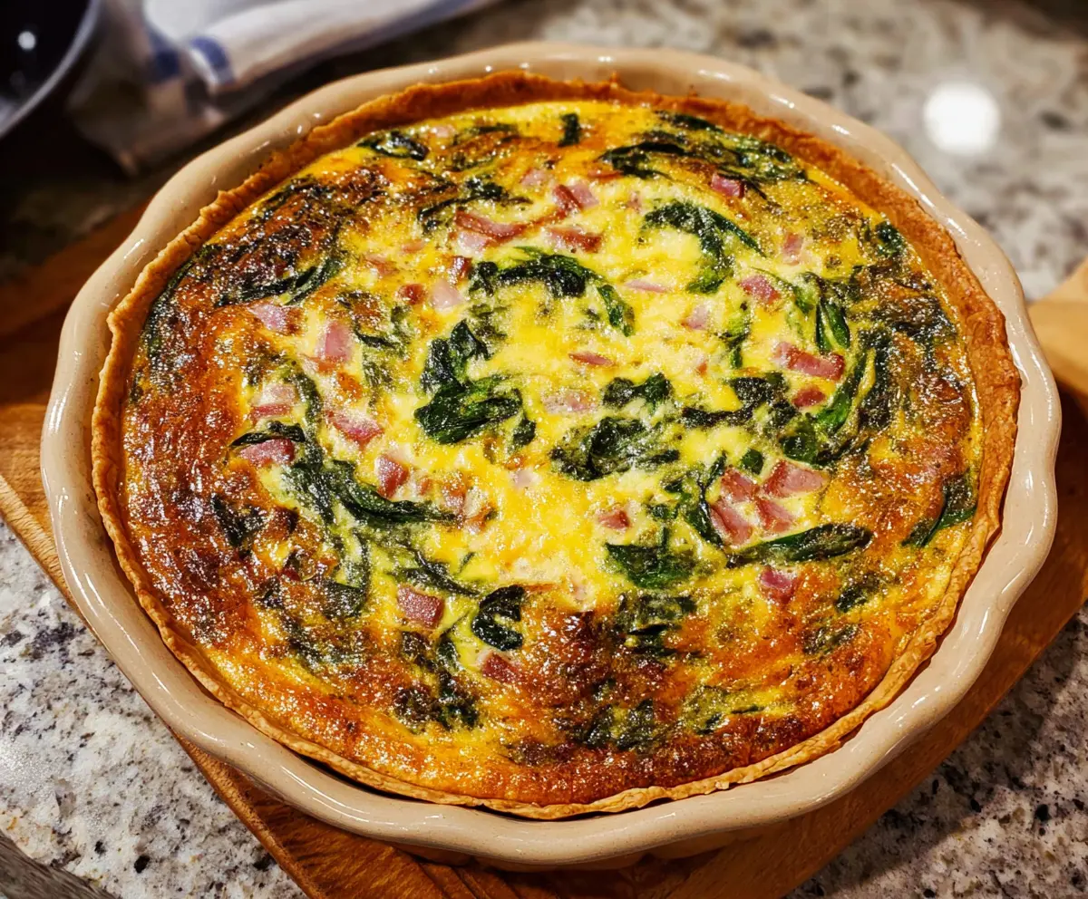 This Easter Ham and Spinach Quiche is a tasty combination of creamy eggs, savory ham, and fresh spinach all baked in a flaky crust. Perfect for brunch or a special family gathering!