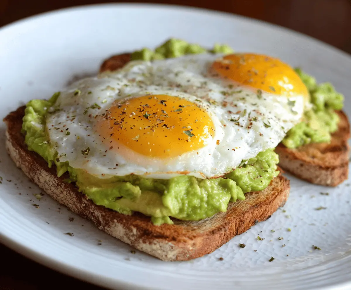 Egg and avocado toast is a tasty and healthy breakfast option! It features creamy avocado spread on toasted bread, topped with a perfectly cooked egg. Yummy!
