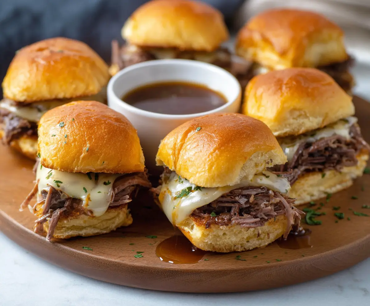 These French Dip Sliders are a fun twist on the classic sandwich! Juicy roast beef is tucked inside soft rolls and paired with a flavorful dipping sauce that makes each bite extra tasty.