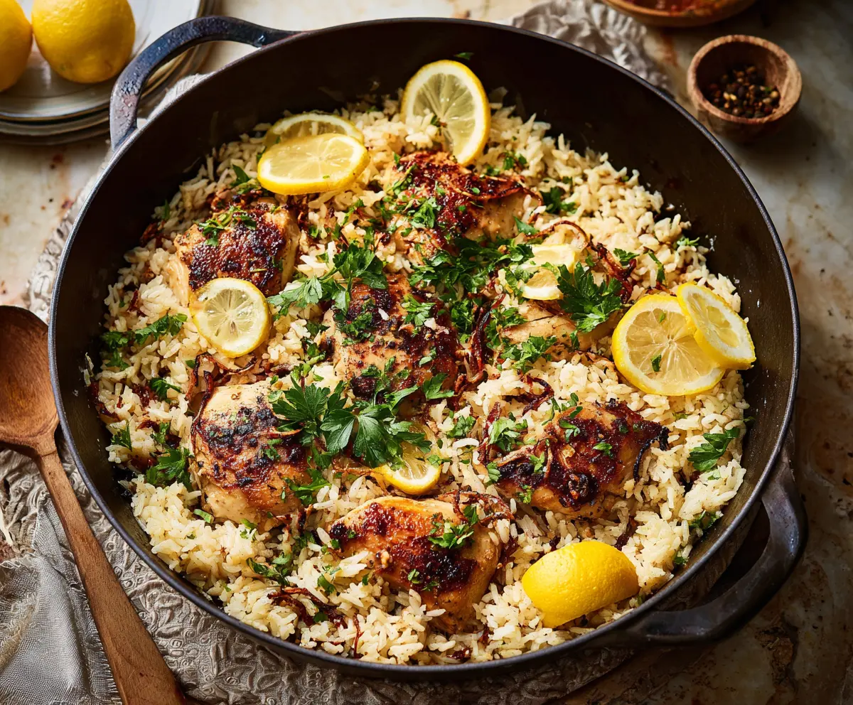 Once you’ve taken it out of the oven, let it rest for 5 minutes. Before serving, sprinkle some freshly chopped parsley over the top—this adds a lovely touch of color and flavor! Serve it warm and enjoy the delightful lemony aroma along with your juicy chicken and flavorful rice.