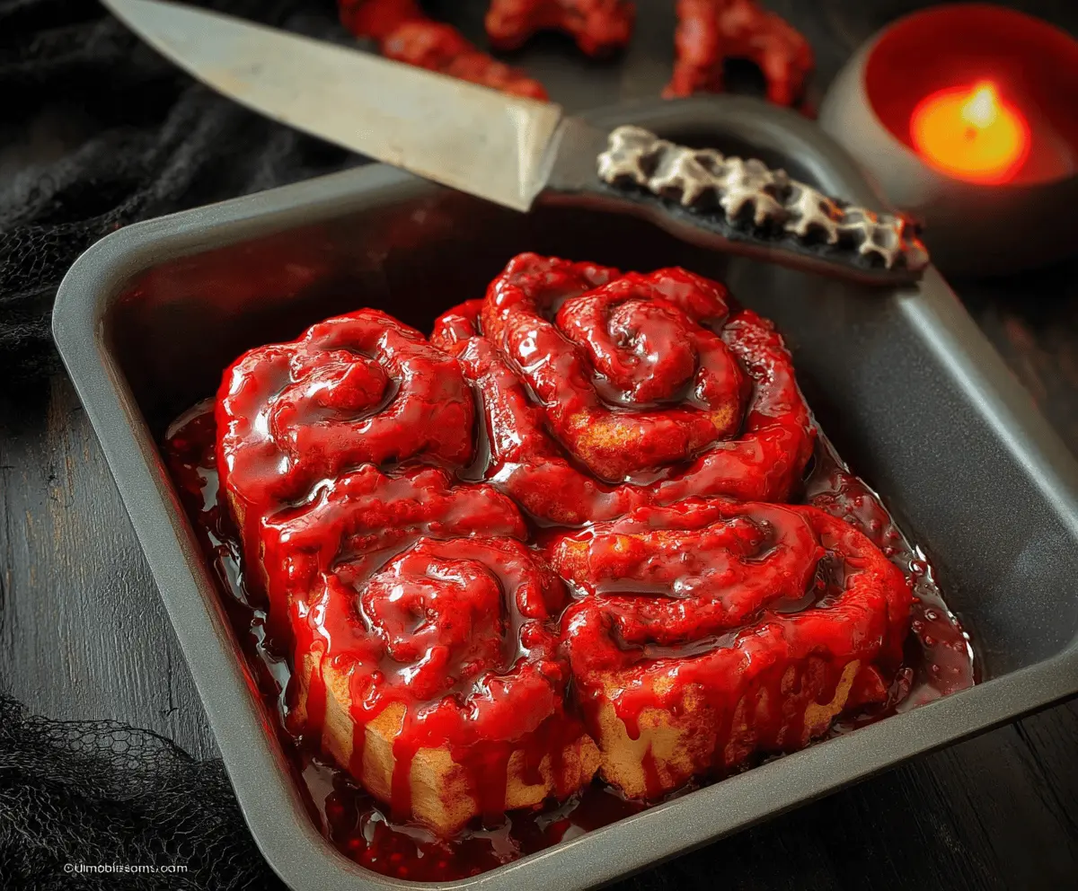 These spooky Halloween Bloody Cinnamon Rolls are both fun and tasty! Soft, sweet rolls are drizzled with a blood-red icing that looks eerily delicious. Perfect for a festive treat!