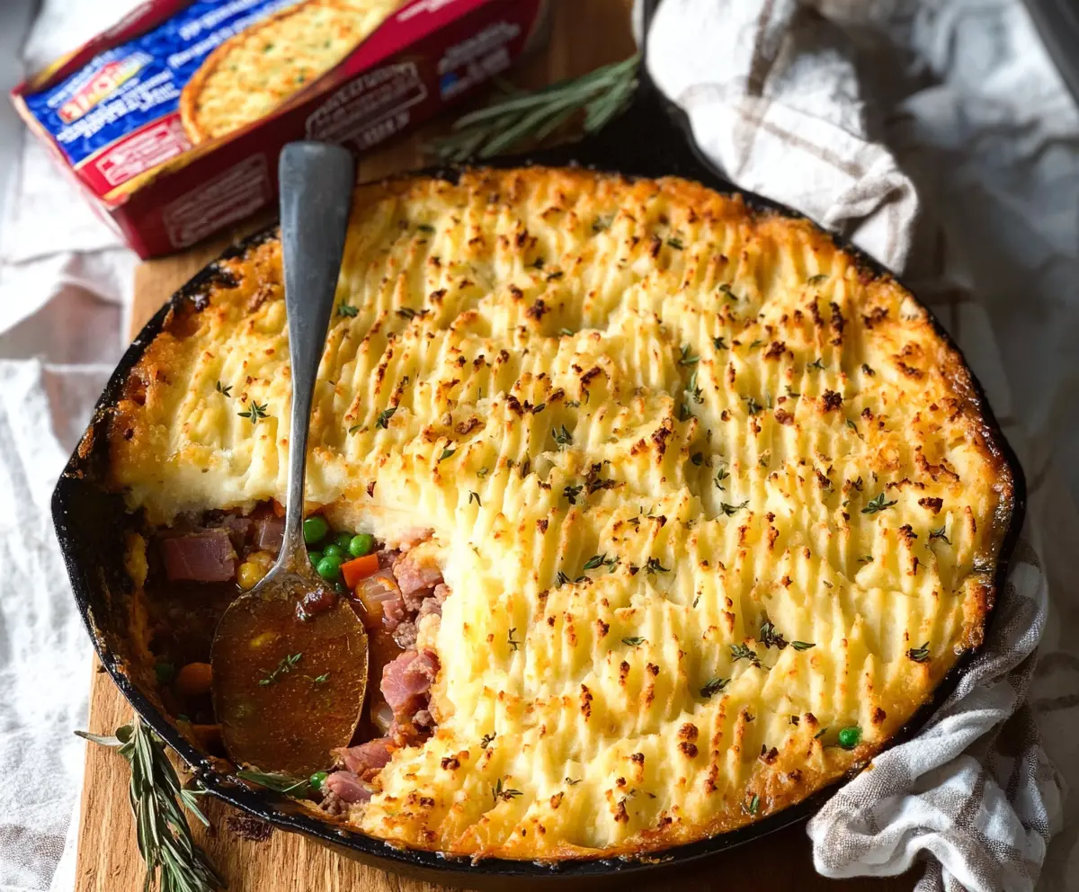 This Ham Shepherd’s Pie is a cozy and comforting dish perfect for dinner. It’s made with tender ham, creamy mashed potatoes, and a veggie-packed filling.