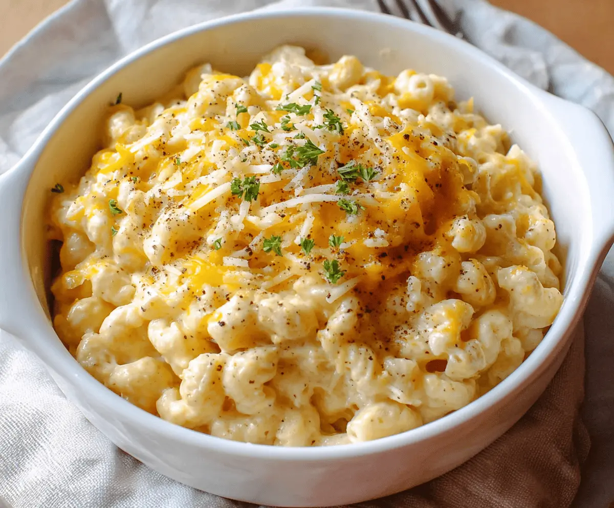 Transfer the mac and cheese to serving bowls. For an extra pop of flavor and color, garnish with sliced green onions and a sprinkle of freshly ground black pepper.