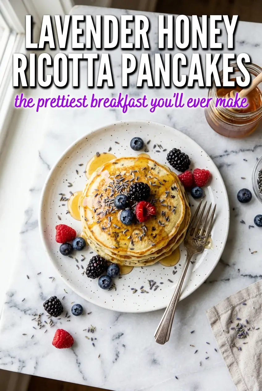 Lavender Honey Ricotta Pancakes fluffy floral honey