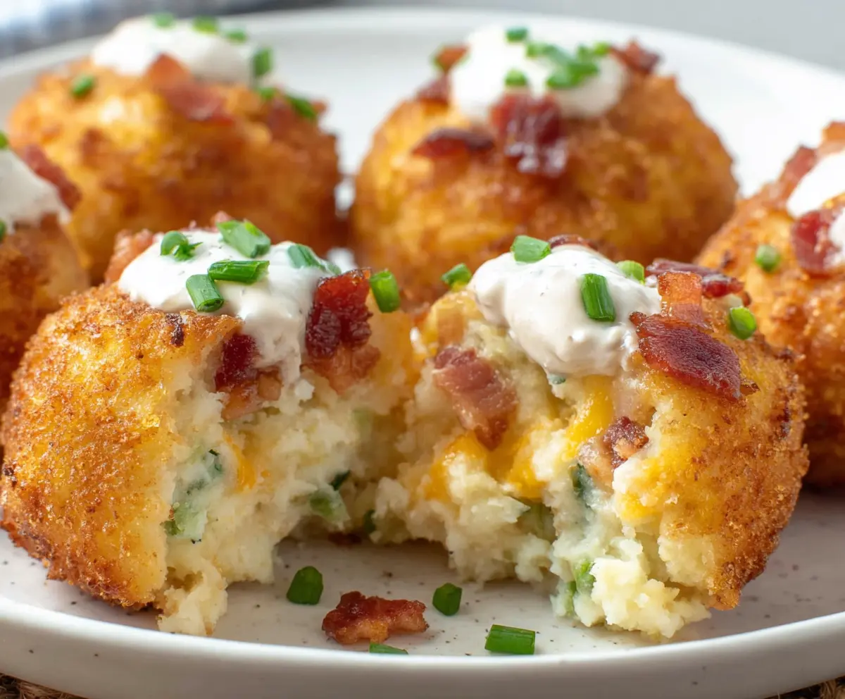 Once fried, sprinkle the bites with additional crumbled bacon, shredded cheddar cheese, and chopped green onions for a tasty garnish. Serve them warm with a side of sour cream or your favorite dipping sauce.