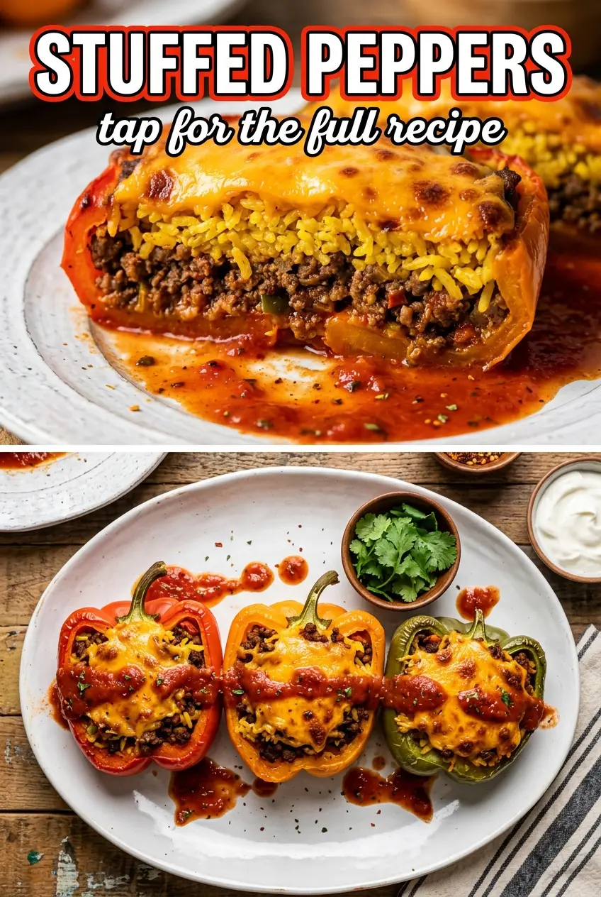 Roasted peppers, a savory beef-and-rice filling, and a blanket of melted cheese make these Mexican stuffed peppers the kind of dinner that disappears fast. The peppers stay tender with just enough bite, while the filling turns rich and cohesive instead of crumbly or watery. Every bite gets a little smoke from the charred skins, a little heat from the salsa, and plenty of texture from the beans and corn.