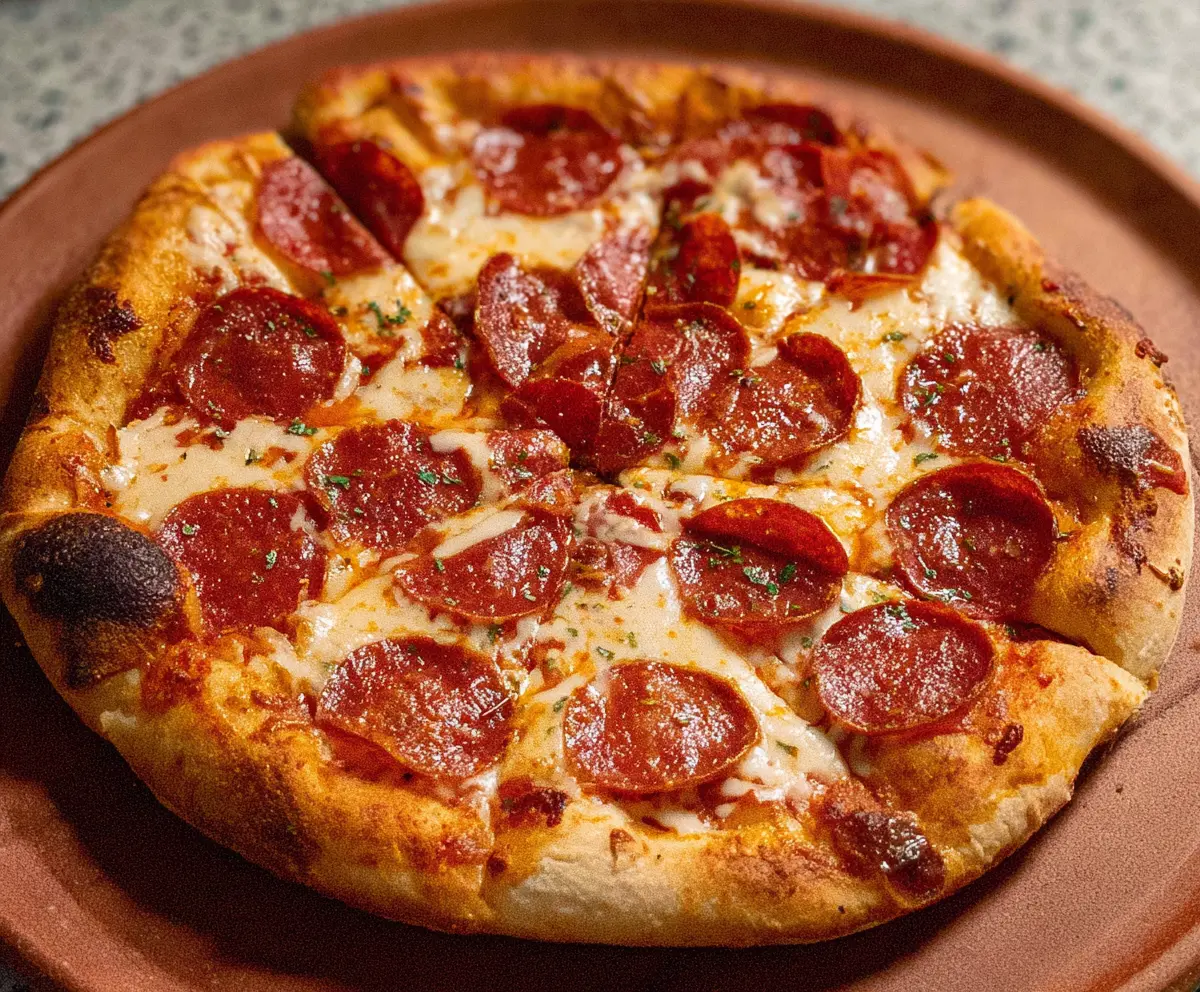 This pepperoni pizza is a classic favorite! With a crispy crust and gooey cheese topped with spicy, flavorful pepperoni, it’s a dish everyone loves.