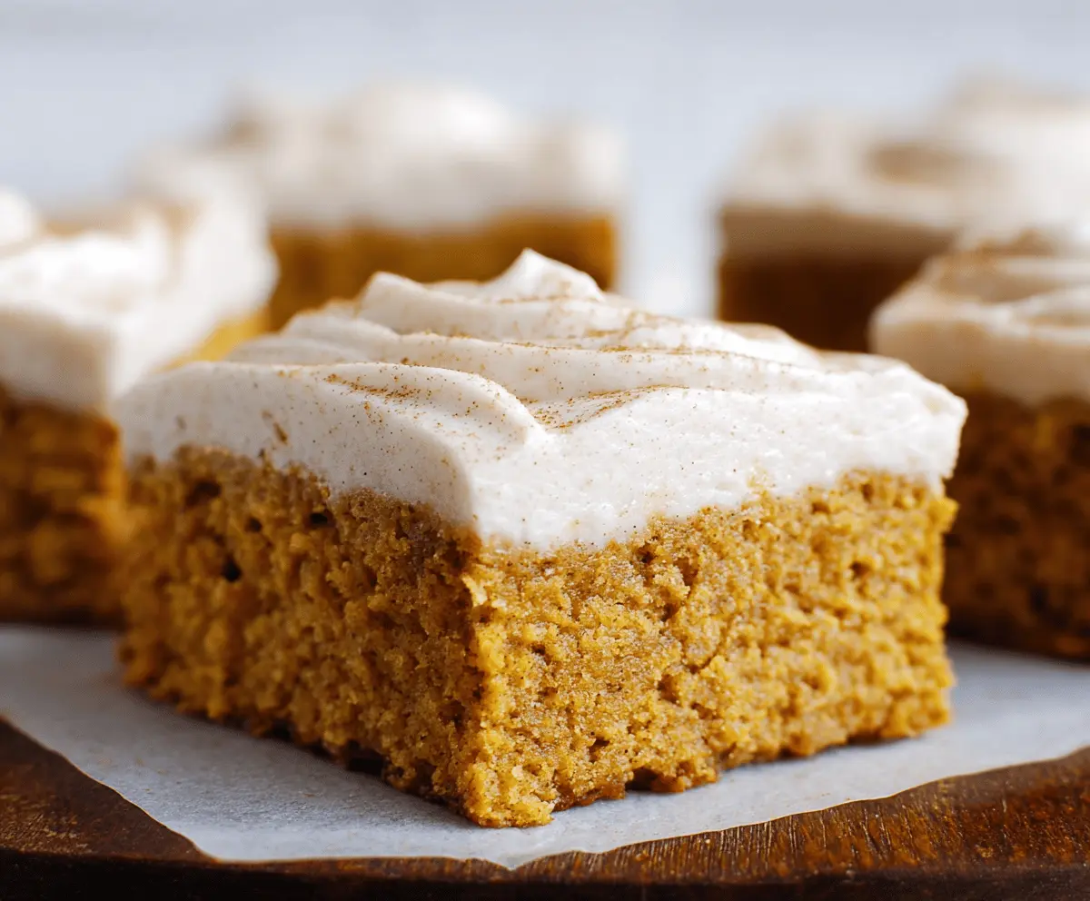 Spread the brown sugar frosting evenly over the cooled pumpkin bars. Cut them into squares and serve. Enjoy the delicious flavors and the cozy comfort these pumpkin bars bring!