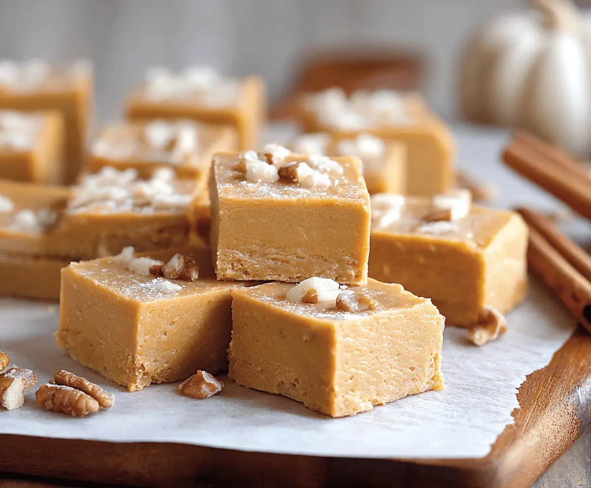 This Pumpkin Pie Fudge is the perfect treat for fall. It has creamy pumpkin flavor mixed with warm spices and a touch of sweetness, all wrapped up in a smooth fudge.