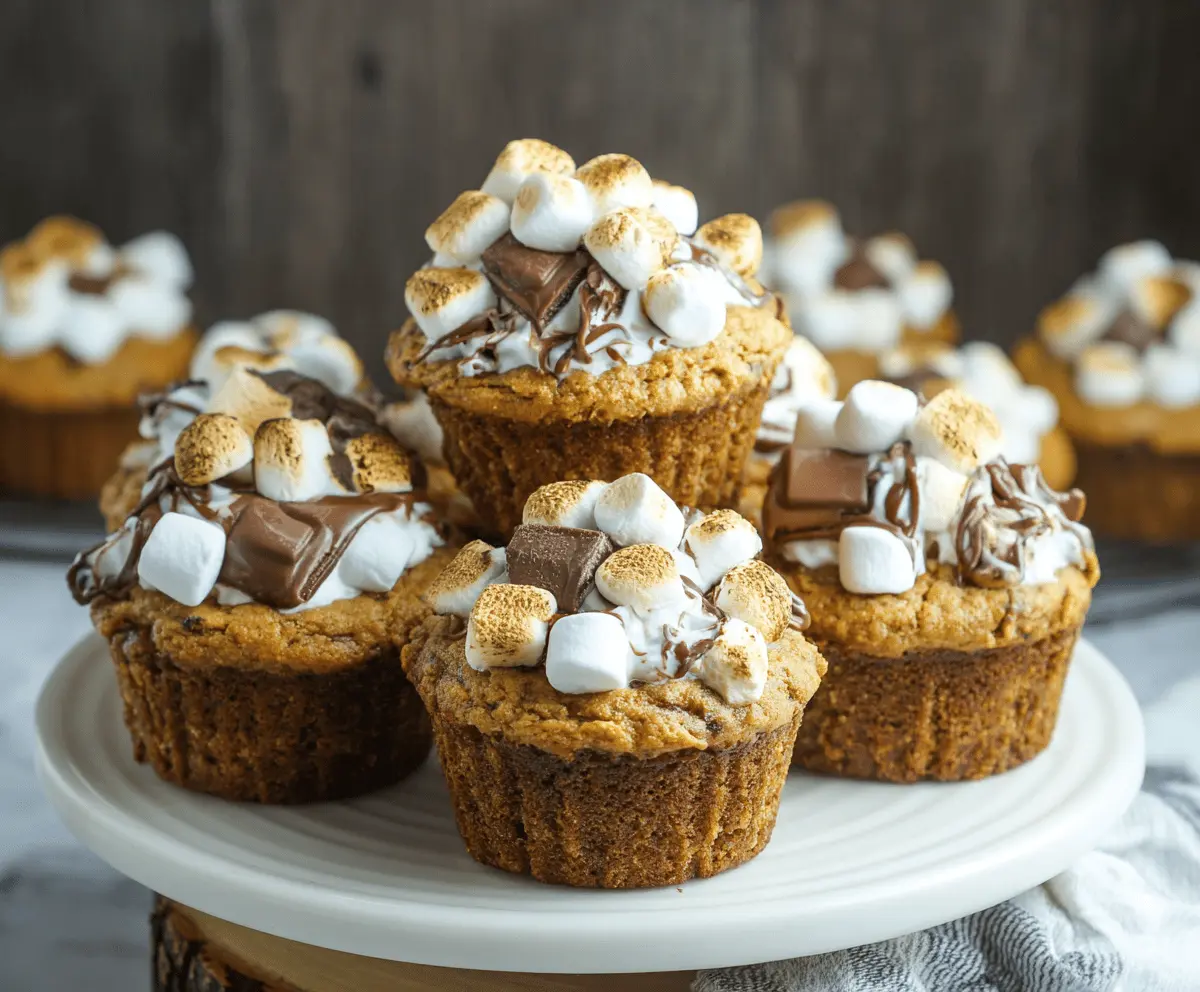 Enjoy your delicious Pumpkin S’mores Muffins — a perfect autumn treat combining pumpkin spice, melted chocolate, toasted marshmallows, and crunchy graham cracker crumbs in every bite!