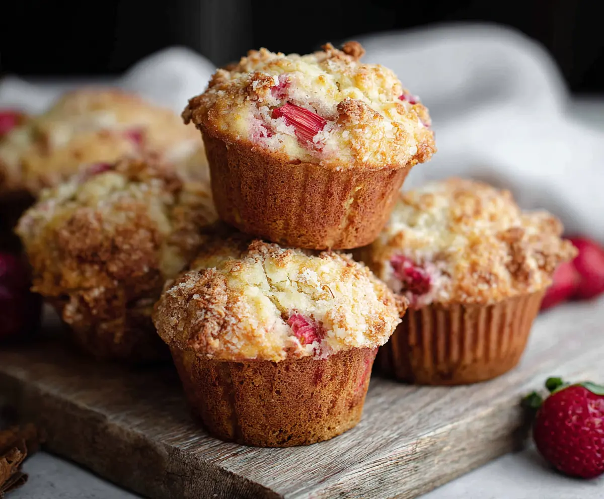 Rhubarb Strawberry Muffins are a tasty treat that mixes sweet strawberries with tangy rhubarb. Each bite is soft and bursting with flavor, perfect for breakfast or a snack!
