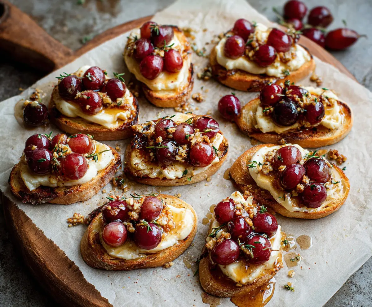Yes! You can roast the grapes and prepare the baguette slices in advance. Just store them separately in airtight containers and assemble right before serving to ensure everything is fresh and crispy.