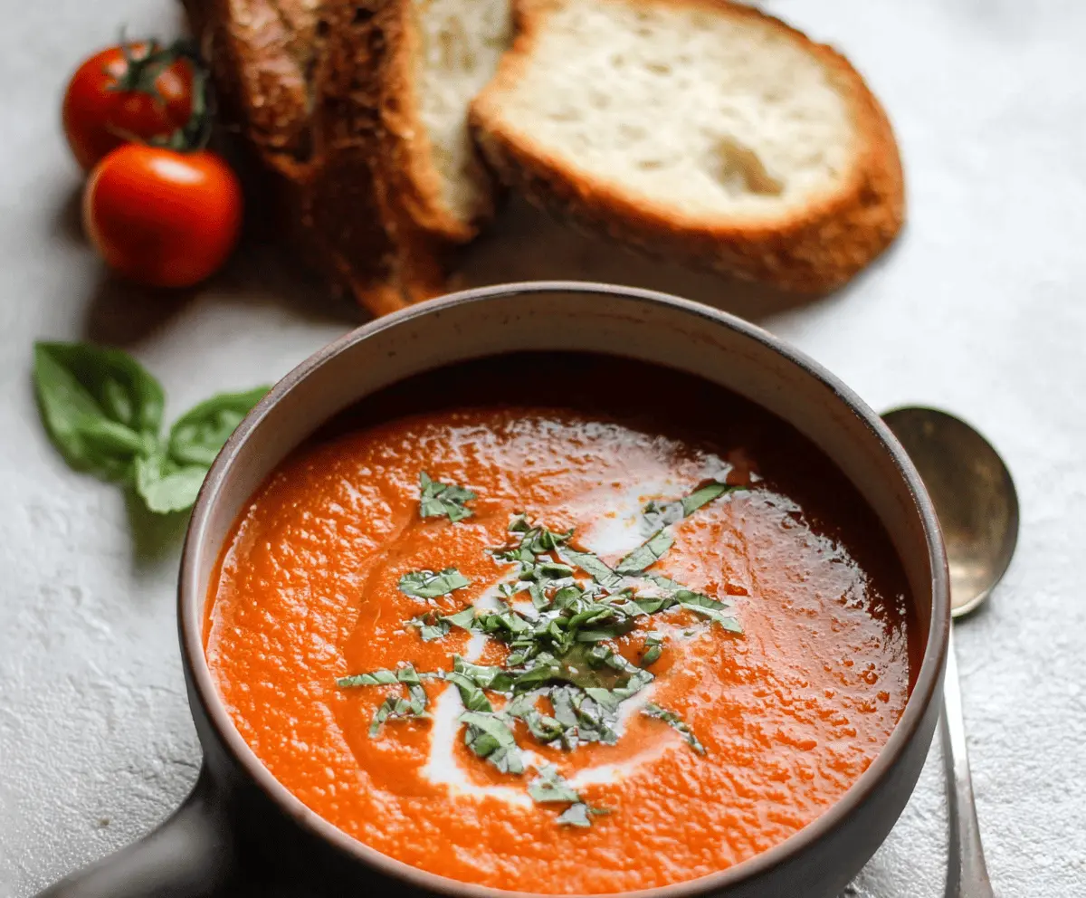 This roasted tomato basil soup is warm, comforting, and bursting with flavor! The sweet tomatoes come alive with a touch of fresh basil, making it a delightful treat.