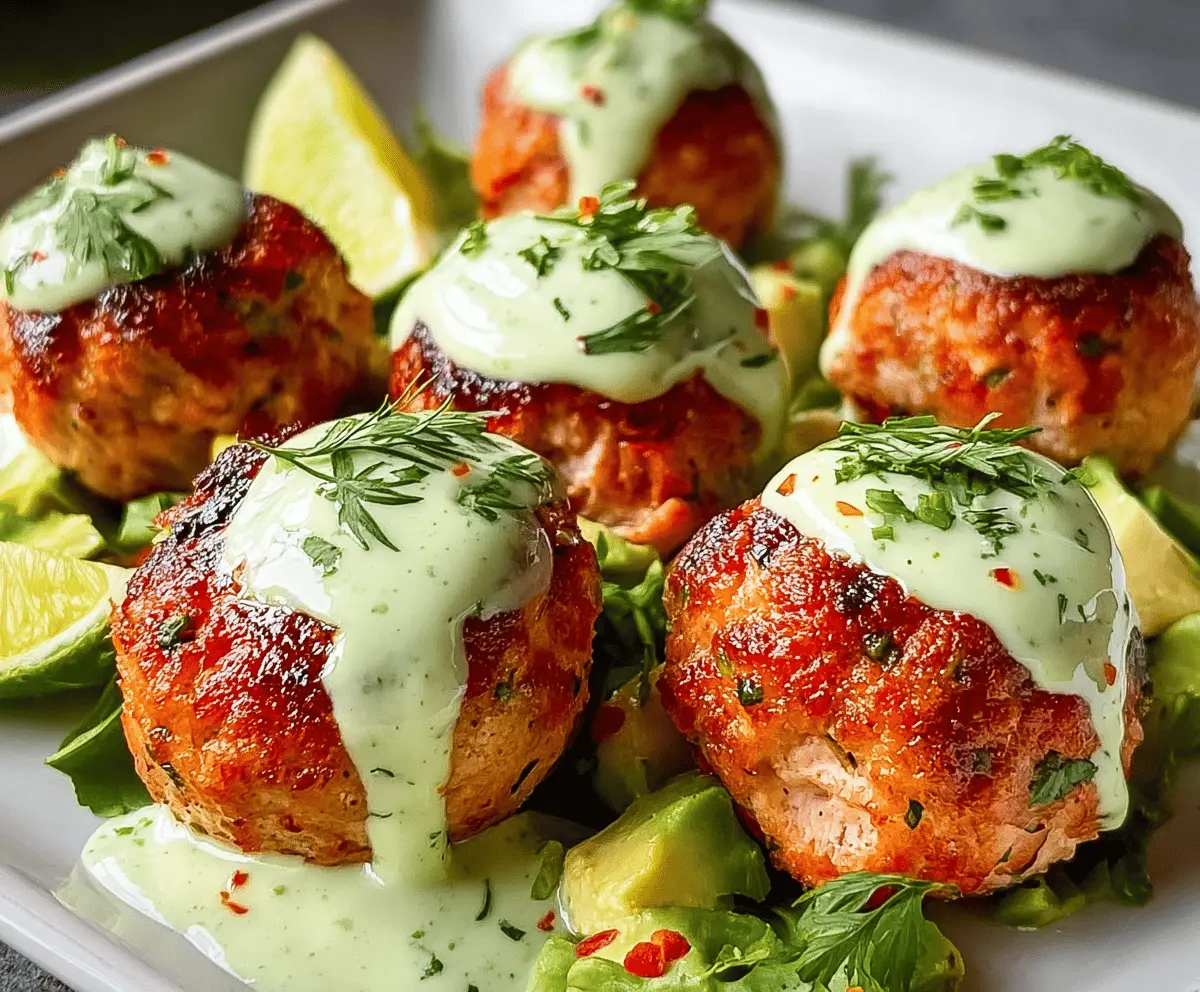 Arrange the salmon balls on a serving plate. Drizzle the creamy avocado sauce generously over them. Garnish with extra chopped herbs and a sprinkle of paprika or black pepper, if desired. Serve with lemon or lime wedges on the side for an extra zesty kick.
