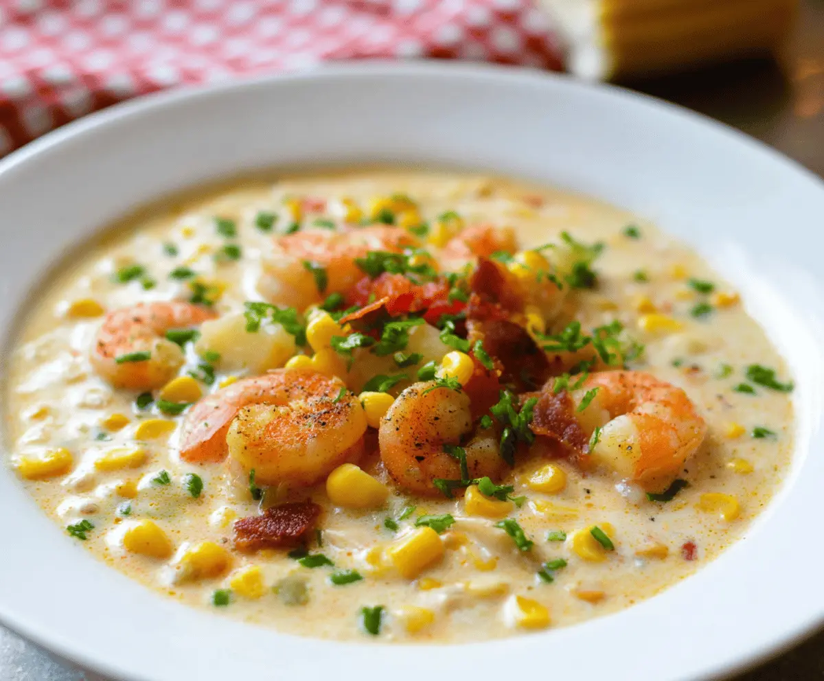 Enjoy this hearty, creamy chowder that’s bursting with sweet corn, succulent shrimp, and smoky bacon flavors! Perfect for gatherings or a cozy night in.
