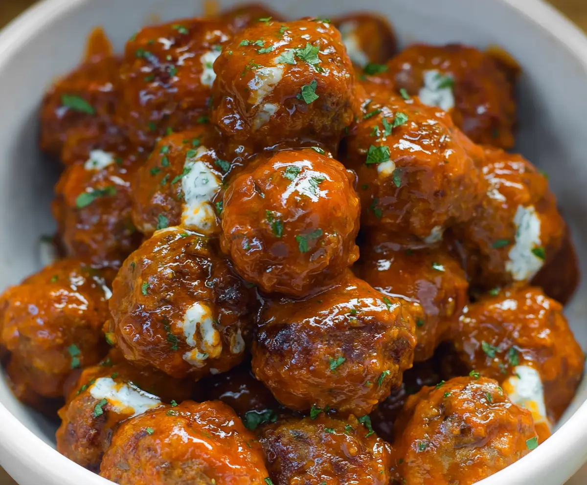 Enjoy these tender, juicy meatballs with a deliciously sweet and tangy honey buffalo sauce—perfect for any occasion! 🥳