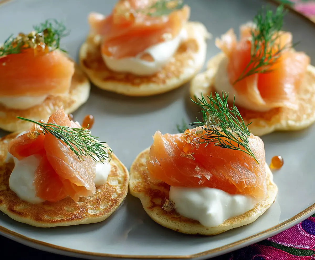 This recipe will take about 30 minutes in total. You’ll spend about 20 minutes preparing and cooking the blinis, and an additional 10 minutes assembling and garnishing. Perfect for a quick appetizer or snack!