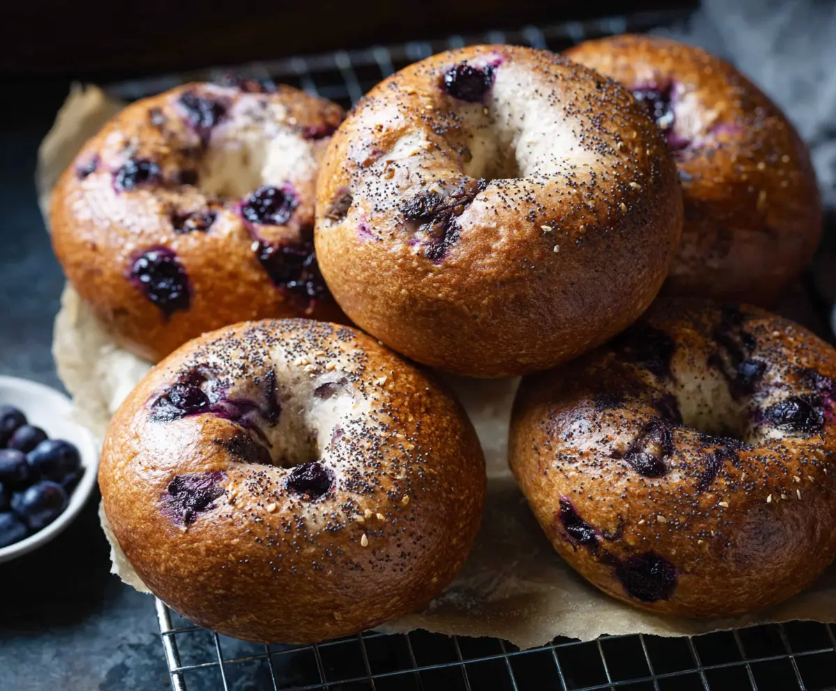 Once baked, allow the bagels to cool on a wire rack. Enjoy them plain or with your favorite spread—these bagels are chewy, tangy, and bursting with sweet blueberry goodness!