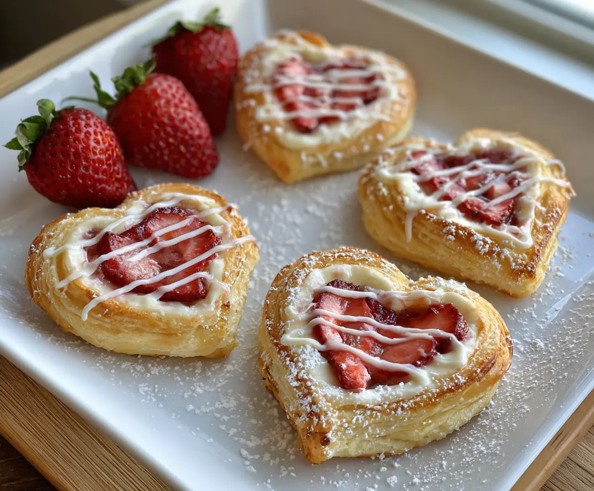 Delicious Strawberry Danish Hearts with fresh strawberries and flaky pastry