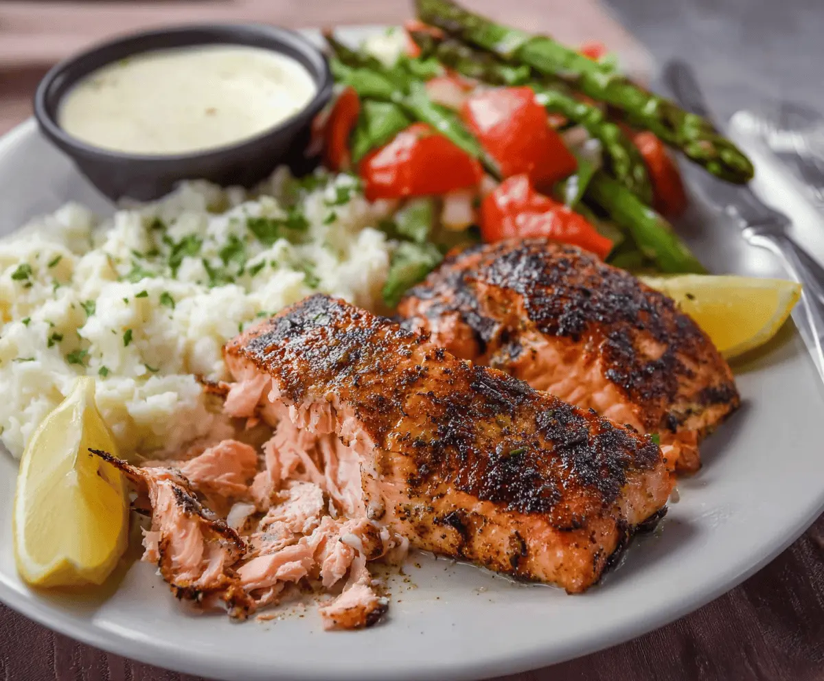 Serve the salmon immediately with lemon wedges and the creamy dipping sauce on the side. Pair it with steamed green beans or a fresh garden salad for a complete meal. Enjoy your flavorful Texas Roadhouse-style salmon with its zesty seasoning, crispy outside, and succulent flaky inside!