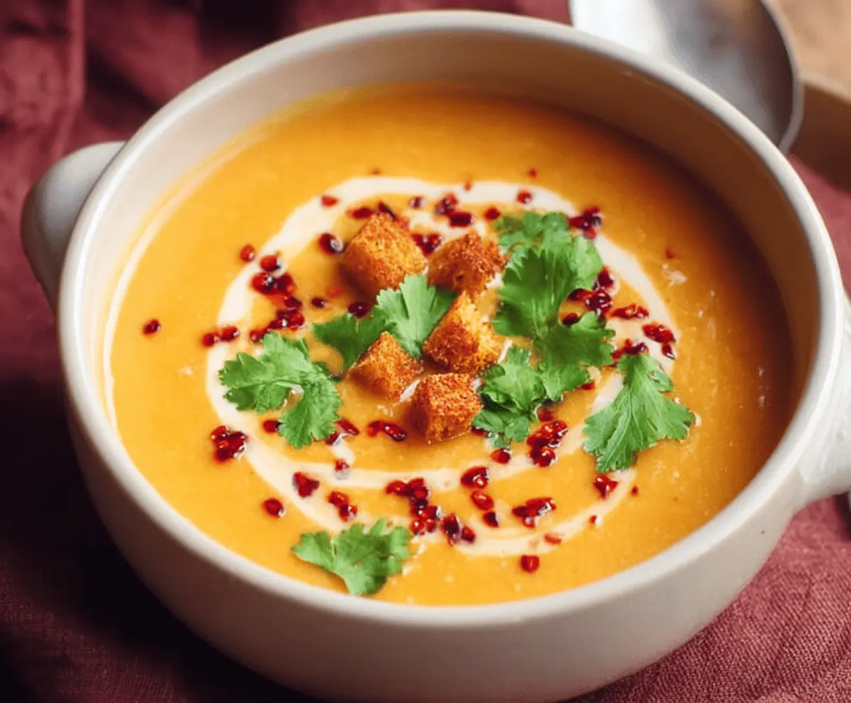 Serve this comforting vegan sweet potato soup warm. Perfect for cozy nights or a healthy lunch! Enjoy every spoonful!