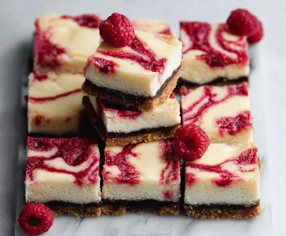 Enjoy your delightful, creamy white chocolate raspberry cheesecake bars with those gorgeous swirls! They’ll be a hit with everyone!