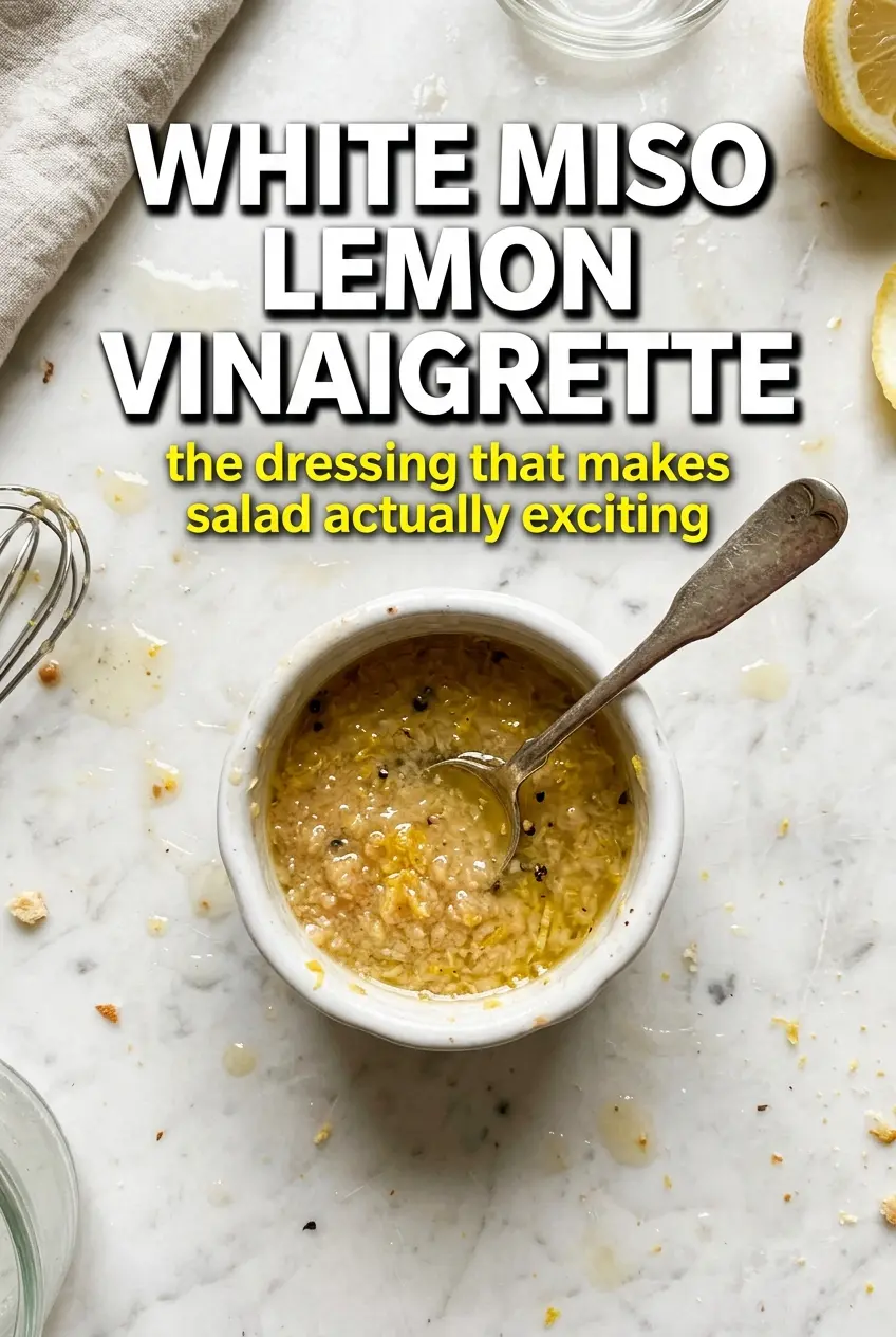 White miso lemon vinaigrette lands in that sweet spot between bright and savory, with enough body to cling to greens instead of sliding straight to the bottom of the bowl. It tastes clean and punchy at first, then finishes with the mellow depth that makes a plain salad feel built, not dressed.