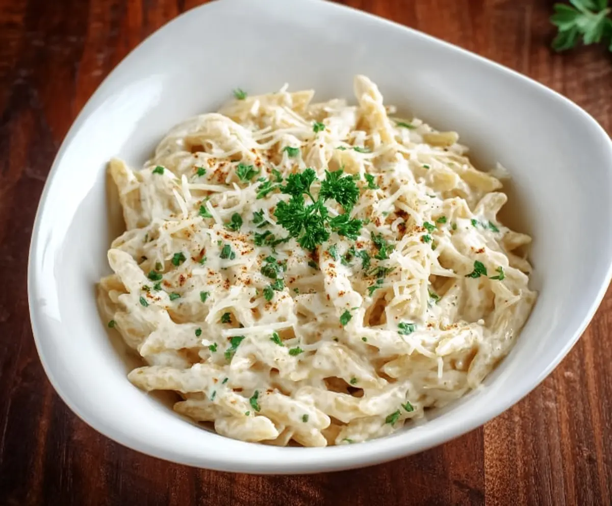 Creamy white pasta sauce served over al dente noodles for a delicious Italian meal